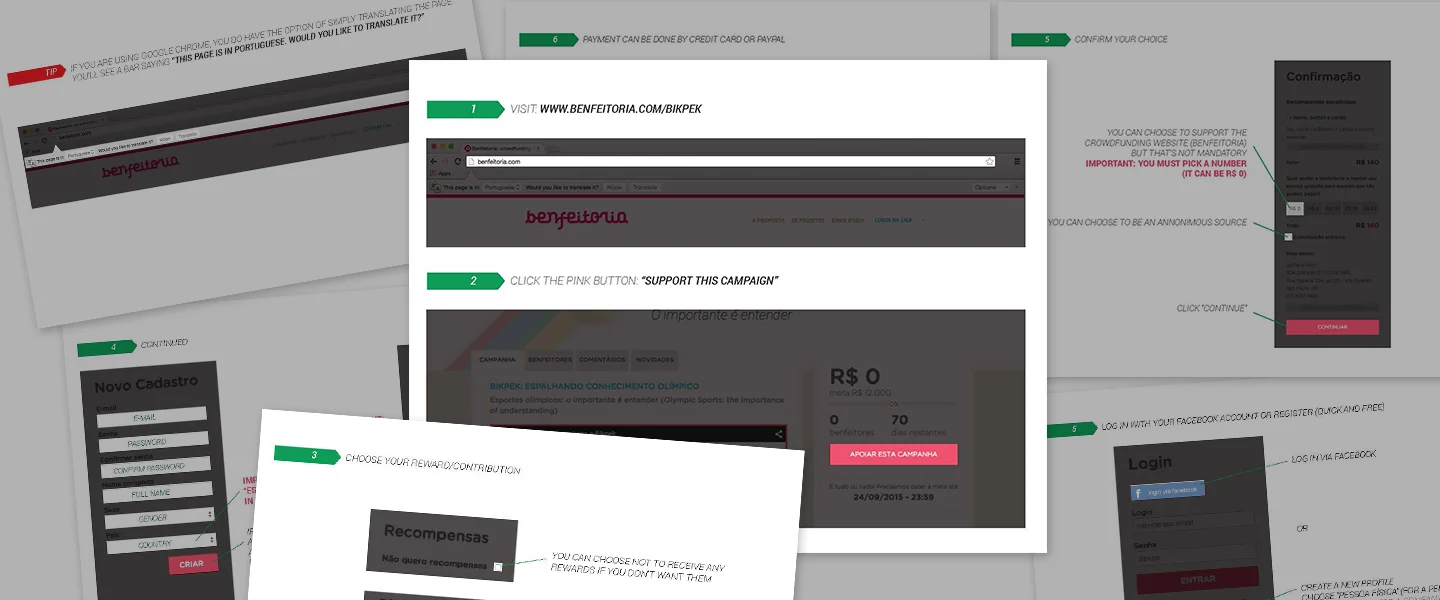 Bilingual (Portuguese and English) “how to donate” tutorial designed to support the donation process handled by a 3rd party provider.