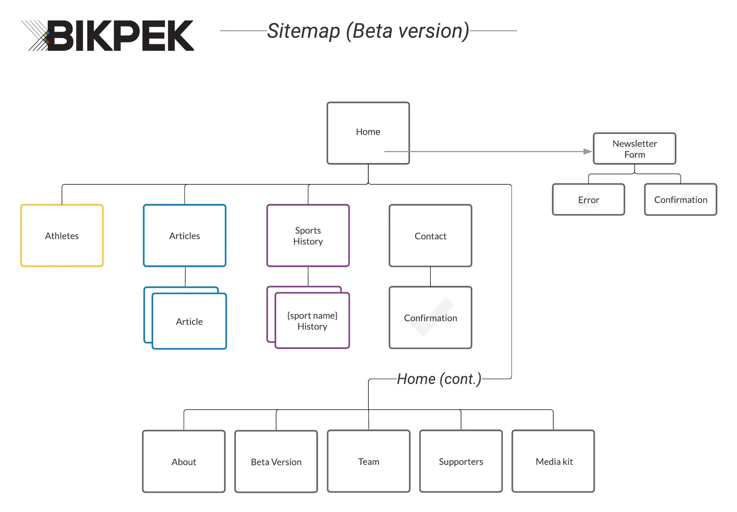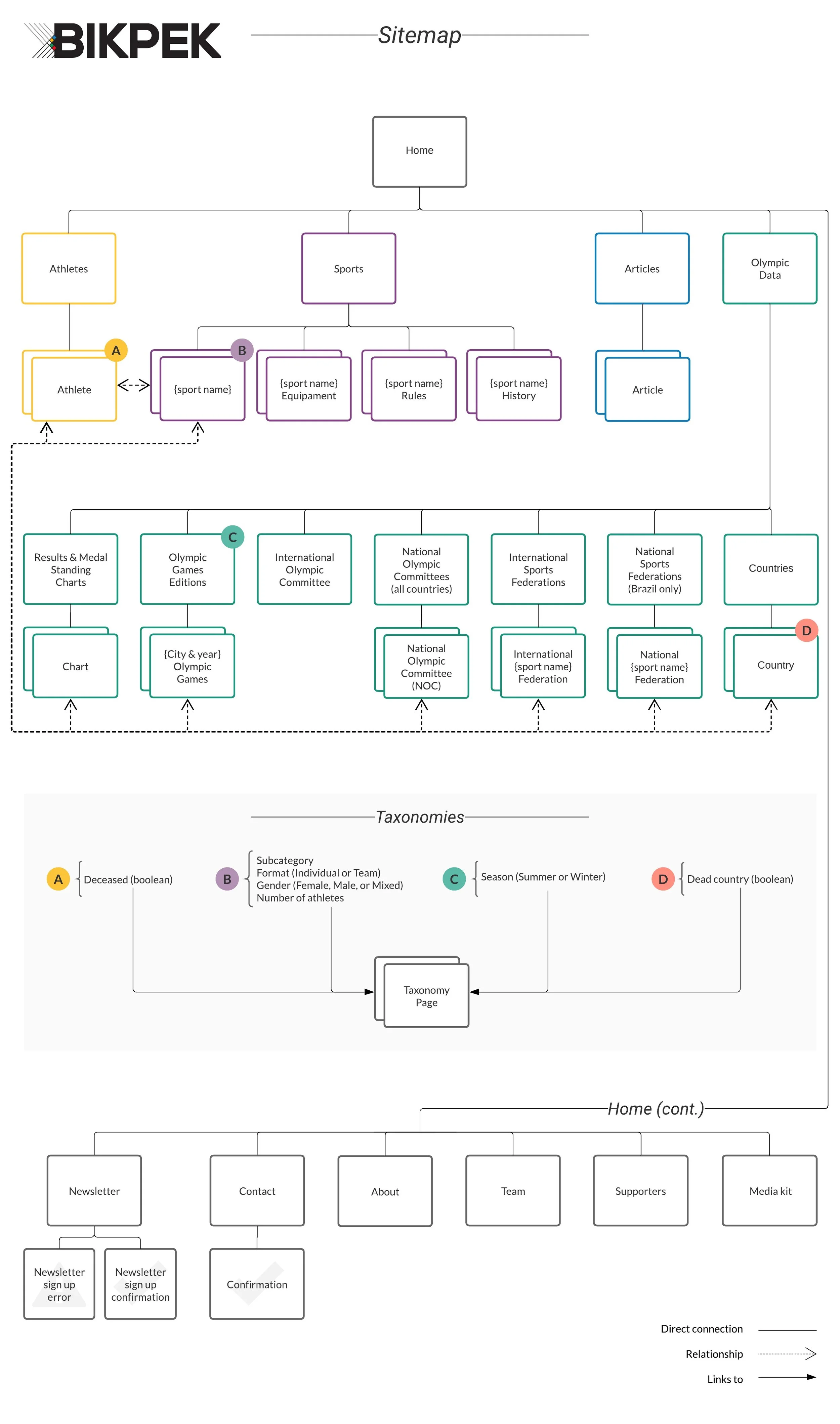 To build Bikpek's information architecture, I performed an assessment of content types, including charts, posts, evergreen content, athletes, and Olympic sports categories. Using the assessment as a guide, I laid out a site development plan.